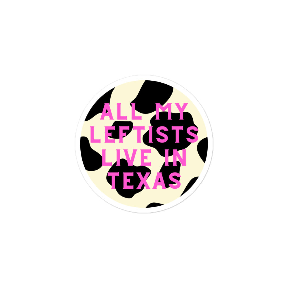 Pink Cow Print All My Leftists Live In Texas Sticker