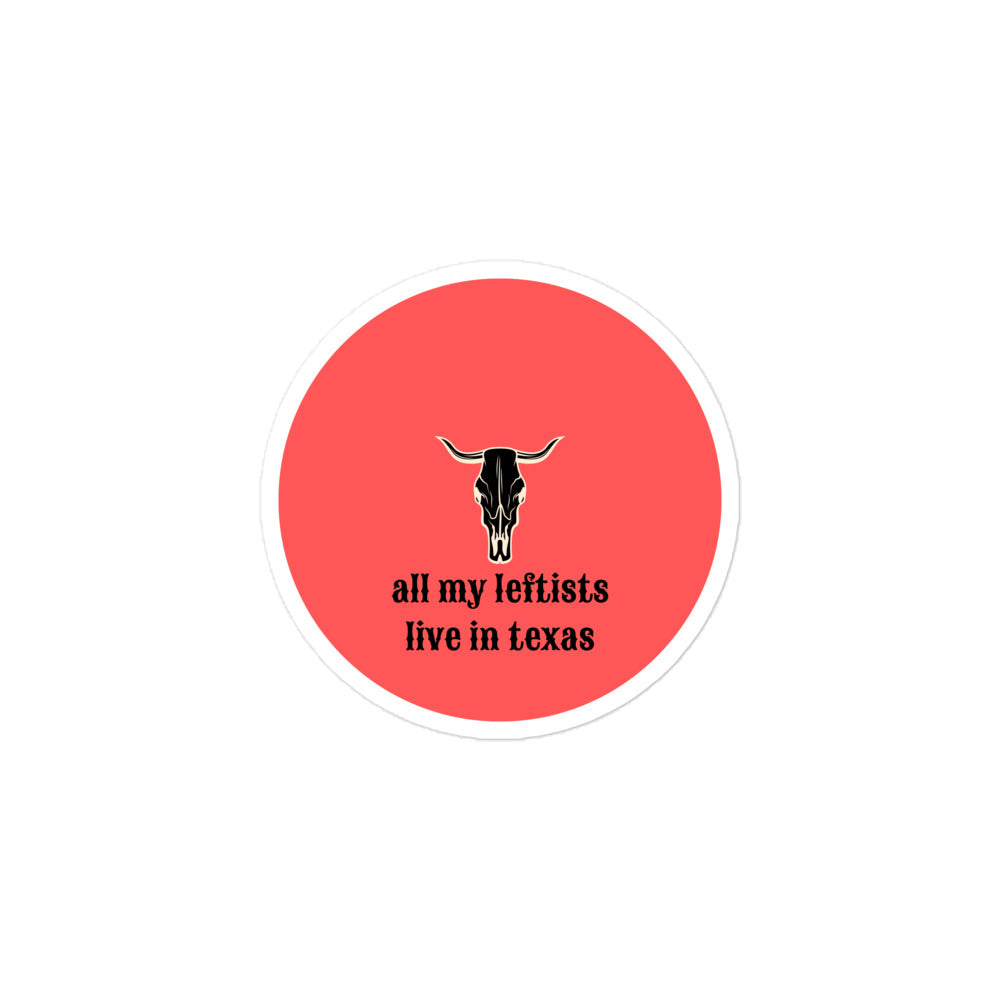 Your water bottle is begging for this sticker. Indulge it. 10% proceeds donated to local Texas charities. Find out which charity we're donating to this month at @allmyleftistsliveintexas on Instagram.